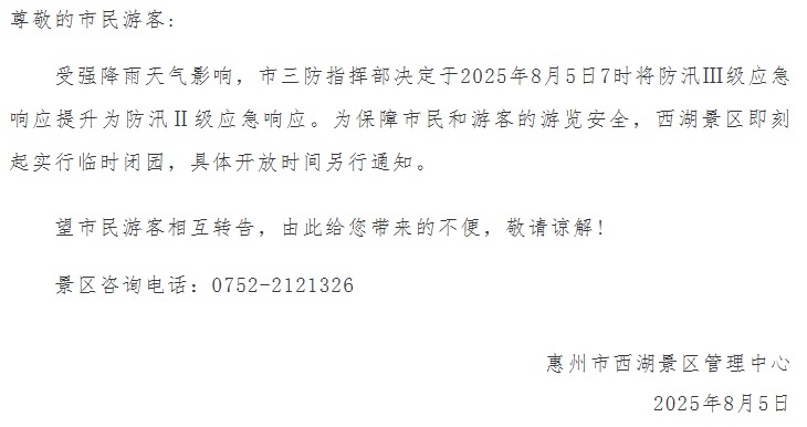 5日6时—18时,广东惠州仲恺高新区实行“五停”。全文如下: