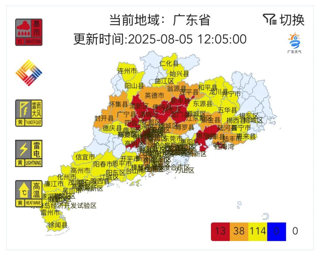 广东发布13个暴雨红色预警