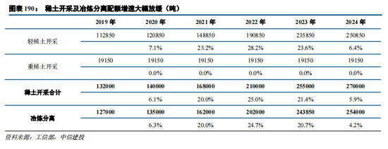 我国稀土采取开采指标配额制度,国内供应量由配额政策决定。2006年我国实施稀土开采总量控制管理,2007年将稀土纳入指令性生产计划,首次通过行政手段限制产能。2008年《全国矿产资源规划》进一步明确稀土开采的规划调控和严格准入。2011年国务院发布《关于促进稀土行业持续健康发展的若干意见》,实行开采总量控制、出口配额管理。2015年后,中国通过“环保核查+打黑行动”淘汰落后产能,关停非法稀土企业,推动行业集中度提升。2025年2月,工信部发布《稀土开采和稀土冶炼分离总量调控管理办法(暂行)(公开征求意见稿)》,首次将进口矿、独居石纳入配额,并明确稀土开采冶炼分离都必须有国家推动组建的大型稀土集团来进行,增加了对冶炼分离的管控。从此国家对稀土行业统筹能力进一步增强。